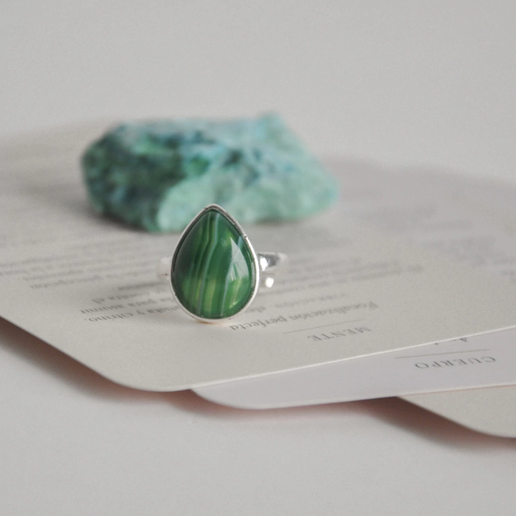 Curación: La Ágata Verde tiene efectos revitalizantes sobre el sistema inmunológico y el sistema digestivo. Favorece la desintoxicación del cuerpo, regula el metabolismo y fortalece el sistema nervioso. Es especialmente útil en casos de fatiga crónica, problemas cardíacos leves o tensión muscular. También se asocia con la mejora de la fertilidad y el equilibrio hormonal.